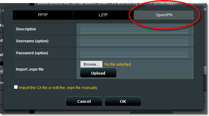IMPORTANT: Setting up OpenVPN on compatible Asus Routers may require a firmware update.
