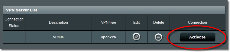 To enable the VPN click onto the ‘Activate’ button.