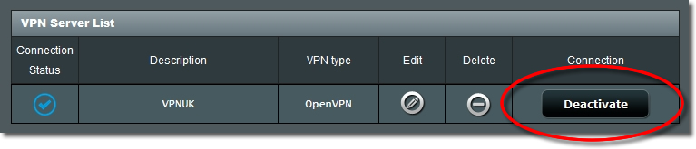 If you would like to disconnect the VPN click onto the ‘Deactivate’ button.