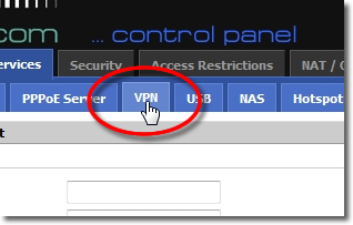 Click onto the ‘VPN’ tab from the ‘Services’ sub menu.