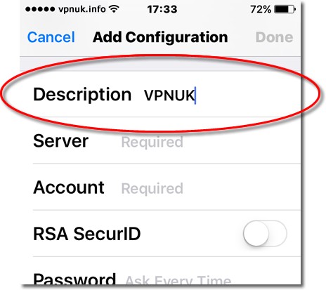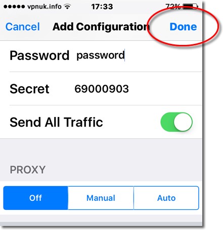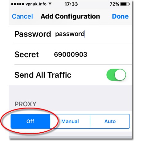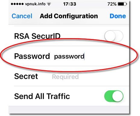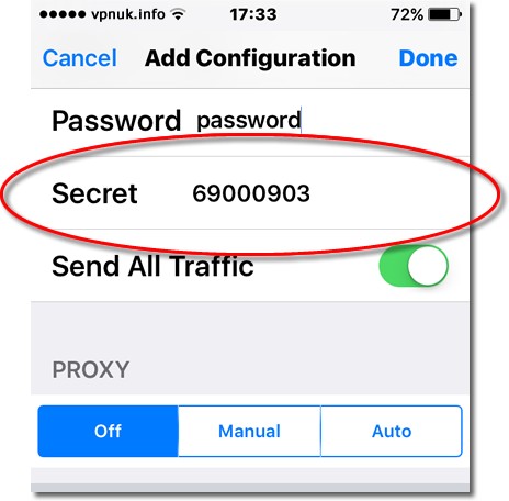 Enter the VPNUK Secret, with VPNUK this is always: 69000903.