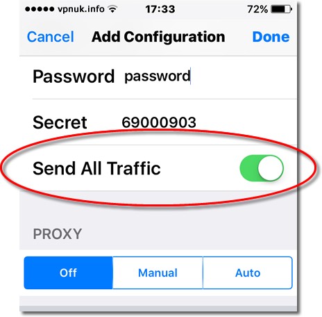 Ensure the send all traffic slider is set to the ‘ON’ position.
