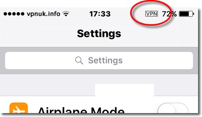 Whilst the VPN is connected there will be a ‘VPN’ notification icon displayed in the status bar.