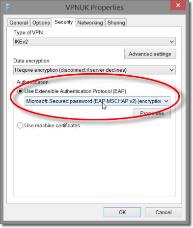 Ensure the Authentication is using (EAP) is checked and set the drop down option to ‘Microsoft Secured Password (EAP-MSCHAPv2)’.