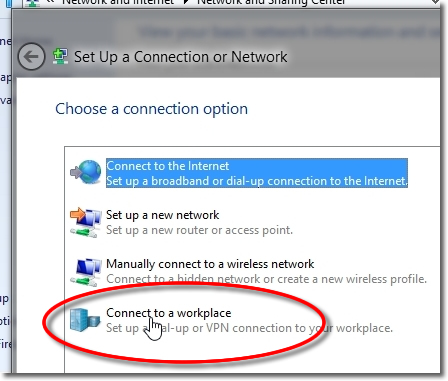 On the next screen, click on ‘Connect to a workplace’ then click ‘Next’.