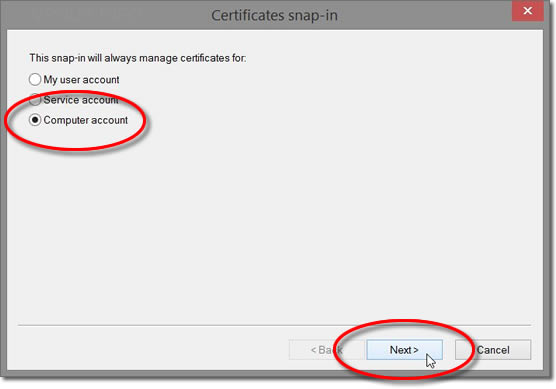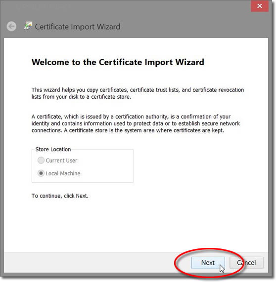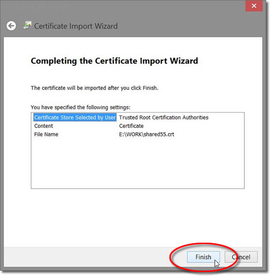Ensure all certificates are placed in the following certificate store ‘Trusted Root Certification Authorities’ then click onto the ‘Next’ button..