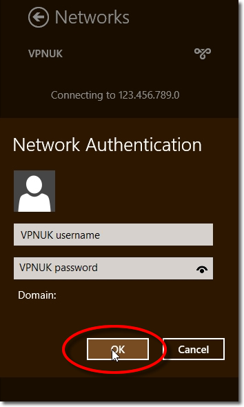 The first time you connect to the VPN you will be asked to enter your login username and password. Once the details are entered click OK to connect!