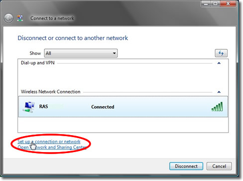 Click on ‘Set up a connection or Network’.