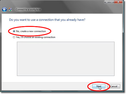 If you are asked if you would like to use an existing connection choose ‘No, create a new connection’ and click ‘Next’.