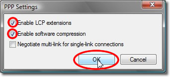 Place a tick in the ‘Enable LCP extensions’ box and ‘Enable software compression’ box and then click ‘OK’.