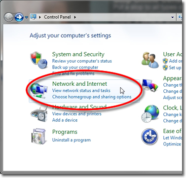 Next, click on the ‘Network and Internet’ control panel.