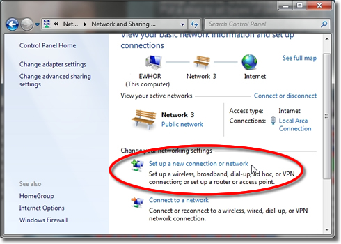 Click on ‘Set up a new connection or Network’.