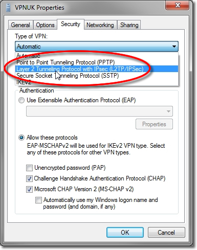 The following instructions will guide you through a manual connection of the VPNUK VPN service on Windows 7 machines. L2TP with IPsec is not always stable on Windows 7 systems so not the recommened connection type.