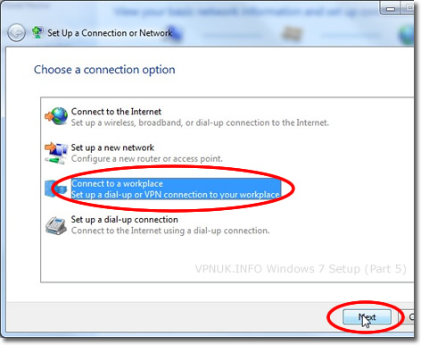 On the next screen, click on ‘Connect to a workplace’ then click ‘Next’.