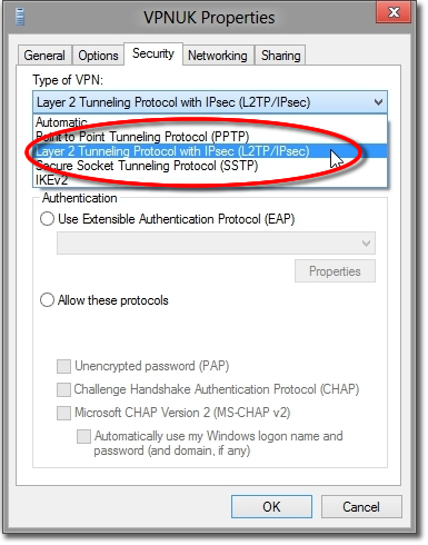 The following instructions will guide you through a manual connection of the VPNUK VPN service on Windows 8 machines. L2TP with IPsec is not always stable on Windows 8 systems so not the recommened connection type.