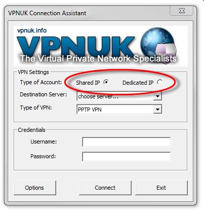 Click onto the VPNUK Connection Assistant desktop shortcut or Start menu program in order to open the the software.