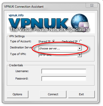 Select the ‘Destination Server’ you would like to connect to. If you use the Dedicated IP service, select the corresponding server to where your unique IP is located.